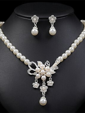 Parure de bijoux 3 Blanc Perle Chrome 1 Bracelet Boucles d'oreilles Collier Femmes Élégant ancien Mode Le style rétro Classique Parure de Bijoux Pour Mariage Soirée robe demoiselle d honneur