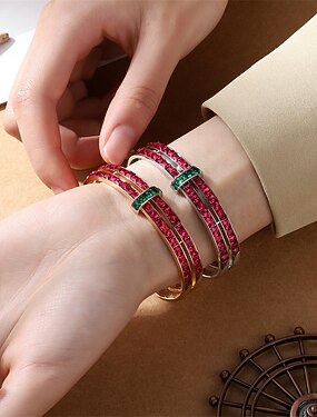Bracelet Jonc Chaîne épaisse Fantaisie Zircon Mode Mode Bracelet Bijoux Argent Rond pour Quotidien Cadeau Fête