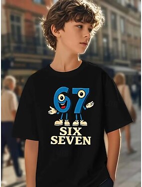 Garçons 3D Graphique Argot drôle 67 T-shirt Manche Courte Impression 3D Été Printemps Sports Mode Streetwear Enfants 4-12 ans Col Rond Extérieur Occasionnel Quotidien Coupe régulière