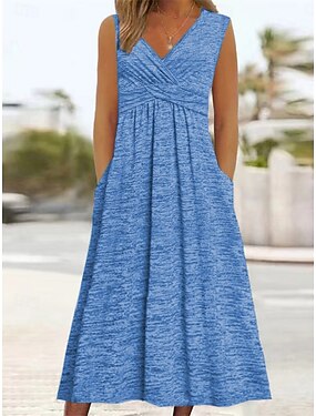 Femmes Robe Midi Robe Décontractée Robe débardeur Élégant Mode Moderne Extérieur Vacances Sortir Coupe régulière Uni Sans manches Col en V Bleu Noir Rose Claire Violet Été Printemps