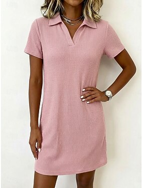 Femmes Mini robe Robe gaufrée Robe T-Shirt Basique Classique Quotidien Vacances Coupe régulière Uni Manche Courte Col de chemise Noir Rose Claire Rouge Abricot Été Printemps