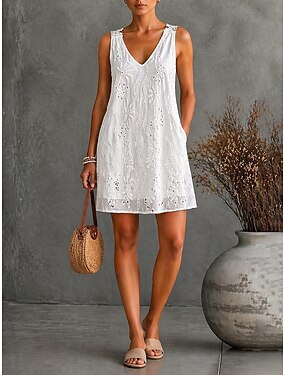 Femmes Robe Longueur Genou Robe en Dentelle Robe Blanche Mode Moderne Extérieur Week-end Coupe régulière Uni Sans manches Col en V Blanche Été Printemps