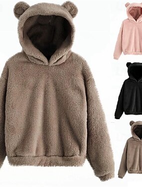 Femmes Sweat à capuche Uni Occasionnel manche longue À capuche Hauts Réguliers Rue Tenue Quotidienne Noir Blanche Rose Claire Vin Violet Automne Hiver