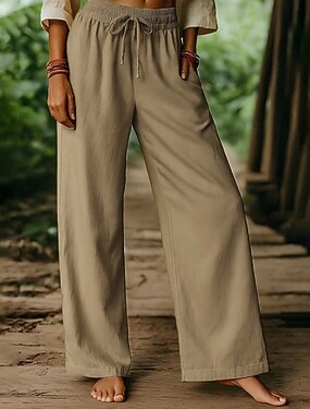Femmes Faux coton lin Jambe large Chinos Vacances Mode Basique Longueur complète Taille haute Uni Ceinture Élastique Confortable Doux Élastique Extérieur Rue Vert Armée Blanche Vert Kaki Ét