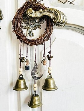 Cloche de sorcière décorative à suspendre, cloches de protection classiques avec bouteilles de bénédiction noires et blanches, carillon éolien spirituel pour autel wiccan, décoration murale païenne