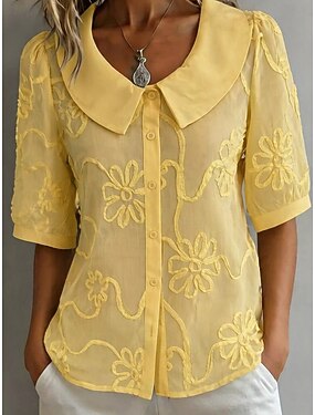 Femmes Chemise Fleuri Élégant manche longue Col Rond Claudine Hauts Réguliers Quotidien Vêtements de rue Travail Blanche Jaune Bleu clair Été Printemps