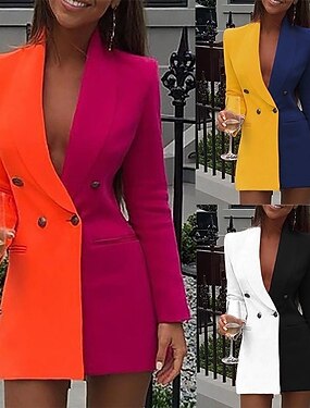 Femmes Blazer Confortable Respirant Avec Poches Occasionnel Uni Formel Bureau Rue Occasionnel Double Boutonnage Long Col Rabattu Coupe régulière manche longue Vêtements d'extérieur Noir Jaune Rouge