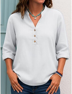 Chemise/blouse femme 100% coton, boutons, unie, basique, moderne, col, blanche, rose, bleu marine, bleu clair, été