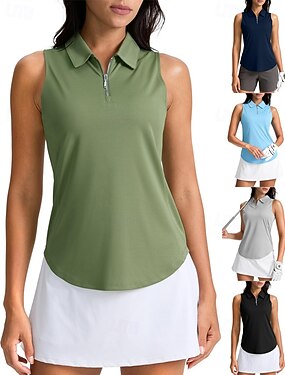 Femmes Couleur Unie Chemise de tennis Sans manches UPF50+ Séchage Rapide Tennis Le golf Badminton Col zippé T-shirt Top Noir bleu marine Vert Vêtements de tennis