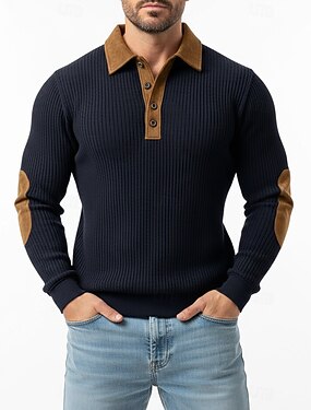Homme Sweat-shirt Pull Sweat à capuche boutonné Tricot côtelé Vert Véronèse Rouge Bordeaux bleu marine Kaki Col Polo Uni Patchwork Bloc de Couleur Texturé Occasionnel Quotidien Sport & Loisir ancien