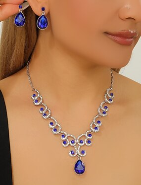 Parure de Bijoux 1 jeu Saphir Pierre Précieuse & Cristal Pierres synthétiques Boucles d'Oreilles Colliers décoratif Femme Soirée dames Luxe Mignon Goutte Larme Parure de Bijoux Pour Soirée Mariage