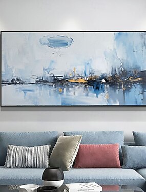 Peinture originale faite main sur toile bleue, cadeau extra large paysage marin bleu, art mural à la texture bleue dynamique, œuvre d'art bleue personnalisée pour chambre
