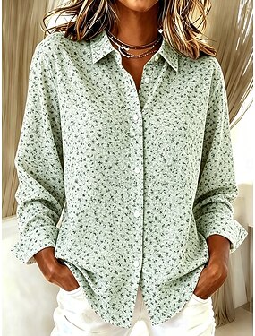 Chemise Femme Lin Semblable Respirant Léger Boutonnée Tunique Chemise Col Manches Longues Graphique Floral Décontracté Hauts réguliers Travail Quotidien Imprimé Bleu Beige Printemps Automne Hiver