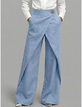 Femmes Pantalon en coton et lin Jambe large Chinos Pantalon d'été Vacances Basique Occasionnel Longueur complète Taille haute Uni Confortable Confort Doux Non Elastique Quotidien Extérieur Vacances