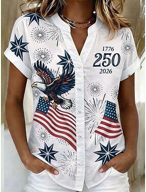Jour de l'Indépendance Américaine Femmes Chemisier Boutons Imprimé Graphique ancien Élégant Occasionnel Manche Courte Col en V Hauts Longs Quotidien Bleu Blanche Rose Claire Violet Vert Été Printemps