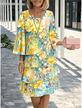 Femmes Robe Longueur Genou Robe fourreau Occasionnel Coupe régulière Fleuri Graphique Manche 3/4 Col ras du cou Bleu Blanche Jaune Été Printemps