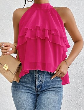 Femmes Débardeur T-shirt A Volants Couleur Unie Élégant Mode Sans manches Col haut Hauts Réguliers Quotidien Sortir Week-end Noir bleu marine Bleu Ciel Violet Vert Été Printemps