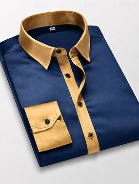 Homme Chemise Chemise à col Chemise boutonnée Bloc de couleur Mariage du quotidien Noir Blanche bleu marine manche longue Col rabattu Printemps & Automne Vêtement Tenue Patchwork