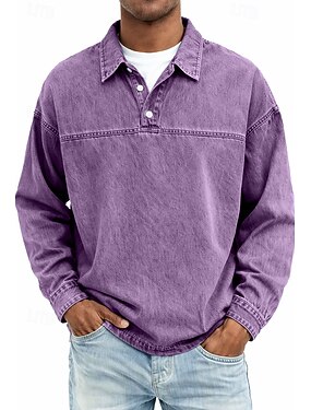 Homme Chemise en Jean Polo en Coton Occasionnel Vacances Classique manche longue Mode Basique Couleur Unie Uni Le style rétro Lavé Printemps Hiver Printemps & Automne Coupe régulière Noir Vert Claire