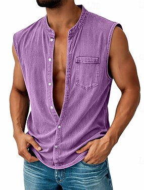 Homme Chemise Chemise Décontractée Chemise Boutonnée Chemise 100% coton délavée à l'acide Noir Vert Claire bleu marine Violet Vert militaire Sans manches Uni Col grand-père Occasionnel Quotidien