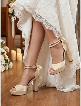 Sandales compensées blanc ivoire pour femmes - élégants escarpins de mariée à brides perlées pour les mariages à l'église