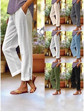 Femmes Chinos Pantalon d'été 100% Coton Vacances Streetwear Basique Longueur complète Taille moyenne Uni Avec Poches Taille Élastique Confortable Confort Non Elastique Quotidien Extérieur Vacances