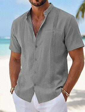 Homme Chemise Chemise en lin Chemise d'été Chemise de Plage Chemise hawaïenne Couleur Unie Occasionnel Quotidien Bleu Jaune foncé Noir bleu marine Manche Courte Col Printemps & Été Été Vêtement Tenue