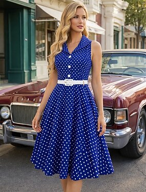 Élégant Classique Années 1950 Midi Robe Trapèze Robe trapèze Robe Évasée Sans manches À pois Ligne A Déguisement Femmes Carnaval Saint-Valentin Mascarade Vacances Tenue Quotidienne Enterrement de Vie