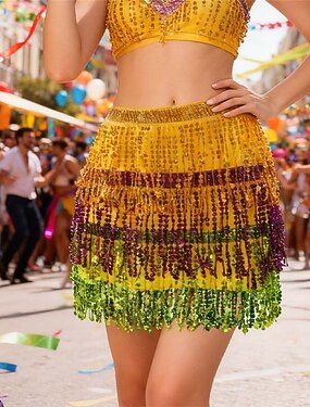 Carnaval 2026 Costume de danse samba du Carnaval de Rio Jupe à franges en sequins de Carnaval brésilien Costume de performance de danse du ventre Jupe de danse Écharpe de danse Jupe demi Costume de