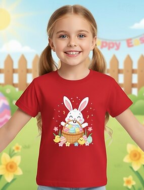 100% Coton Pâques Enfants Fille Bleu Noir Blanche Graphique Lapin T-shirt Col Rond Manche Courte Quotidien Extérieur Vêtements de rue Actif Sport Designer Impression Été Printemps
