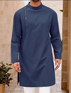 Homme Loungewear Chemise de Nuit Uni Élégant Confort Maison Quotidien Coton Respirant Col montant manche longue Printemps Automne Noir Blanche