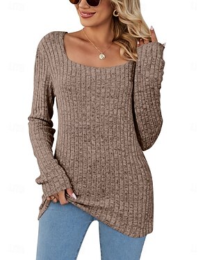 Femmes Tops en tricot gaufre Couleur Unie Élégant Occasionnel manche longue Col en V Hauts Réguliers Quotidien Sortir Bleu Noir Rose Claire Vert Véronèse Rose poussiéreuse Printemps Automne