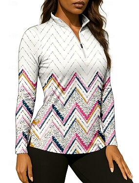 Femmes Géométrique Chemise T-shirt de sport T-shirt POLO Chemise de tennis manche longue Fermeture éclair Floral UPF50+ Résistant aux UV Haute élasticité Évacuation de l'Humidité Respirant