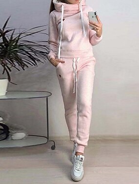 Femmes Survêtement 2 pièces Sweat à capuche Lounge Ensembles de survêtements Couleur Unie Ensemble Vêtements Automne & Hiver Rose Bleu Salle de sport Entraînement Course Taille haute Léger Mode