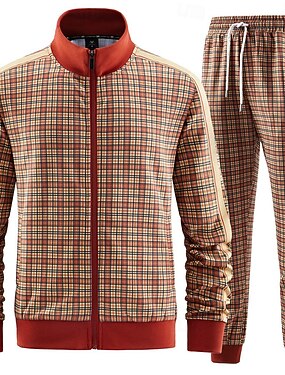Homme À carreaux Géométrique 2 pièces Ensembles de sweat-shirts 3D Survêtement Sweats zippés manche longue Pantalon long Col montant Sportif Extérieur Vacances Athlétique Imprimé Zip Up Printemps