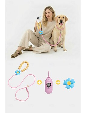 Ensemble de 4 pièces comprenant un harnais et une laisse pour chien, une laisse assortie et un distributeur de sacs à déjections canines. Ce harnais anti-traction et anti-étranglement est doté d'une