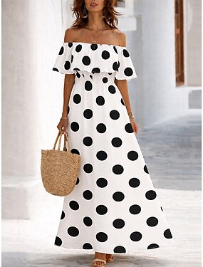 Femmes Robe maxi Robe bohème Robe d'Été Robe Décontractée Robe Ethnique Élégant Bohème Vacances Plage Fête Date Coupe régulière Fleuri Manche Courte Épaules Dénudées Bleu Noir et Blanc Vert Claire