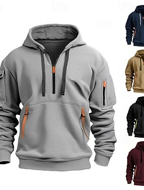 Homme Sweat à capuche Sweat à capuche quart zippé Noir Vin bleu marine Kaki Gris Clair À capuche Uni Avec Poches Sport & Loisir Quotidien Fête Polyester Streetwear Basique Occasionnel Printemps