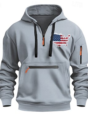Homme Sweat à capuche Pull Sweat à capuche quart zippé Bleu Noir Vin bleu marine Chameau À capuche Drapeau Américain Avec Poches Imprimé Quotidien Sport & Loisir Fête Streetwear Vêtements de sport