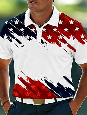 4 juillet 2026, 250e anniversaire Homme Drapeau Américain Polo Manche Courte Polos Revers Vêtements de sport Athleisure Tenue quotidienne Impression 3D Boutons Printemps & Été Bleu Blanche Jaune