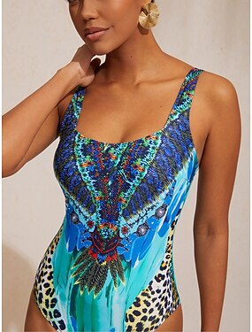 Féminin Maillots de Bain Une Pièce Maillot de bain Coussin amovible Froncé Motif cachemire damassé bohème Bleu Carré Maillots de bain Imprimé nouveau Vacances Tenues de plage Chaussures de plage