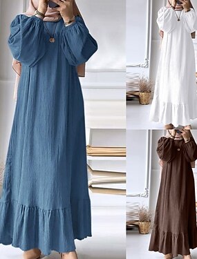 Femmes Robe maxi Faux coton lin Robe Chemise Robe Caftan Robe Décontractée Basique Occasionnel Quotidien Vacances Coupe régulière Uni manche longue Col en V Rose Claire Vert Kaki Bleu de minuit Ét