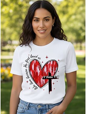 Femmes T-shirt Imprimé Cœur Graphique Lettre ancien Élégant Classique Manche Courte Col ras du cou Hauts Réguliers Quotidien Week-end Bleu Blanche Rose Claire Violet Été Printemps Automne
