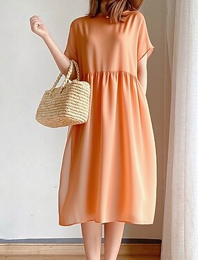 Femmes Robe Midi Faux coton lin Robe fourreau Robe Décontractée Basique Quotidien Fête Sortir Coupe régulière Couleur Unie Manche Courte Col ras du cou Bleu Rose Claire bleu marine Orange Ét
