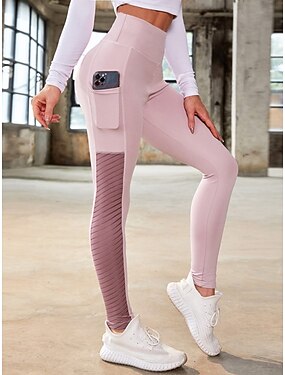 Femmes Pantalons de Pilates Pantalon de yoga Maille Lifting des fesses plissées Taille haute Entraînement en salle Course Fitness Leggings Bas Patchwork Noir Bleu Violet Des sports Tenues de Sport