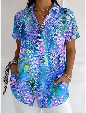 Femmes Chemise Boutons Imprimé Fleuri Graphique ancien Élégant Moderne Manche Courte Col de chemise Hauts Longs Quotidien Bleu Rouge Violet Vert Été Printemps
