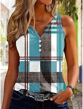 Femmes Débardeur Boutons Imprimé Graphique Géométrie ancien Élégant Occasionnel Sans manches Encolure en V Hauts Réguliers Occasionnel Quotidien Bleu Rouge Bleu Roi Violet Marron Été Printemps