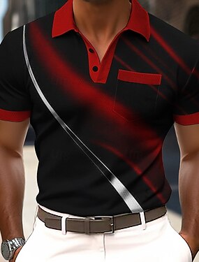 Homme Dégradé Géométrique Polo Manche Courte Polos Revers Vêtement décontracté de travaile Extérieur Fête Tenue quotidienne Avec Poches Impression 3D Été Printemps Bleu Rouge Violet