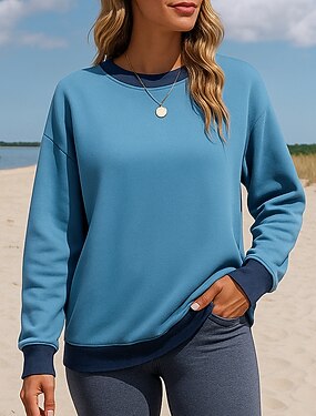 Femmes Bloc de Couleur Sweat-shirt à enfiler Hauts décontractés Printemps Automne manche longue Occasionnel Athleisure Extérieur Voyage Sportif Bleu Abricot Rouge vin Tenue de sport Tenues de Sport