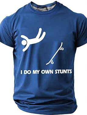T-shirt graphique à manches courtes pour hommes - "Je fais mes propres cascades" humour drôle de skateboard